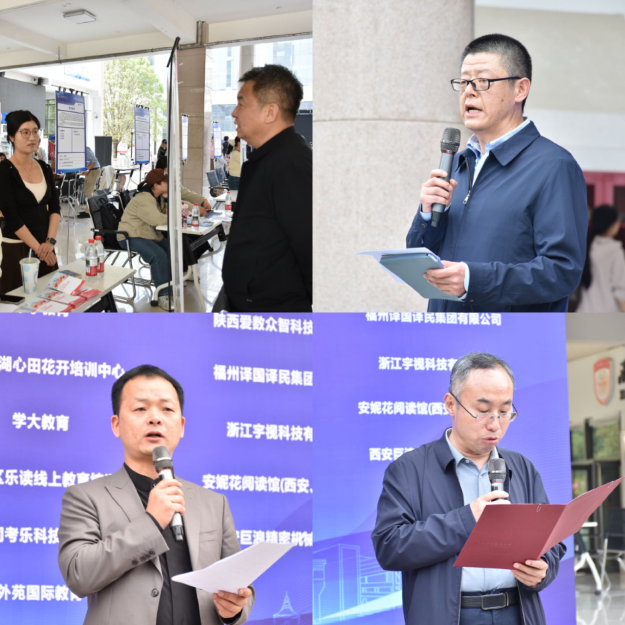 招聘会开幕环节由学校学生处副处长、就业指导中心主任杨小江主持。西安第四联合(综合)高中马哲校长作为用人单位代表发言,对西外往届毕业生的专业能力与职业素养给予高度认可,并分享了行业发展前景与用人需求,表达了深化校企合作、吸纳优秀人才的期待。中国语言文学学院韩伟院长代表学部致辞,对各用人单位的支持表示感谢,鼓励毕业生积极面对就业市场,树立科学择业观,找到适配个人发展的岗位。