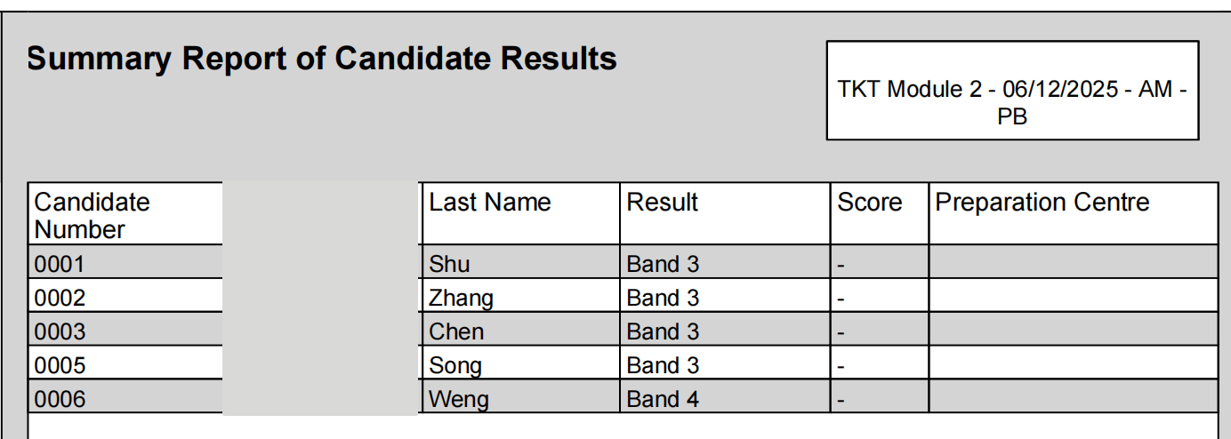 在2025年12月6日由教育学院组织的首场TKT考试中,5名同学全部一次性通过模块1、2、3的考核,并取得优异成绩!
